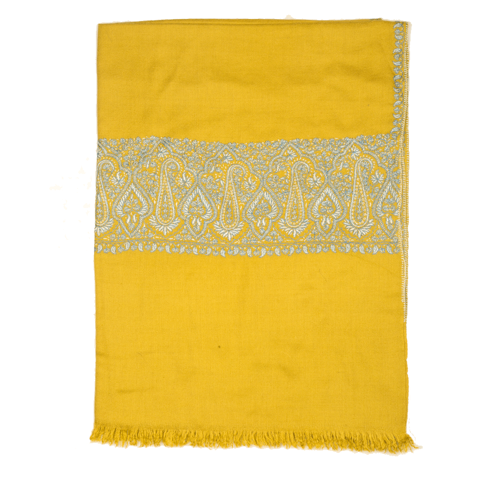 Embroidered Pashmina Stole - Dark Citron & Blue