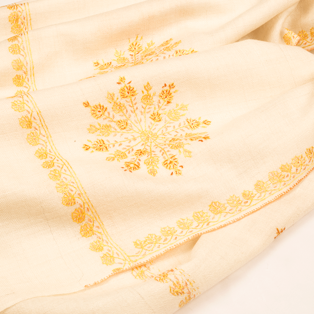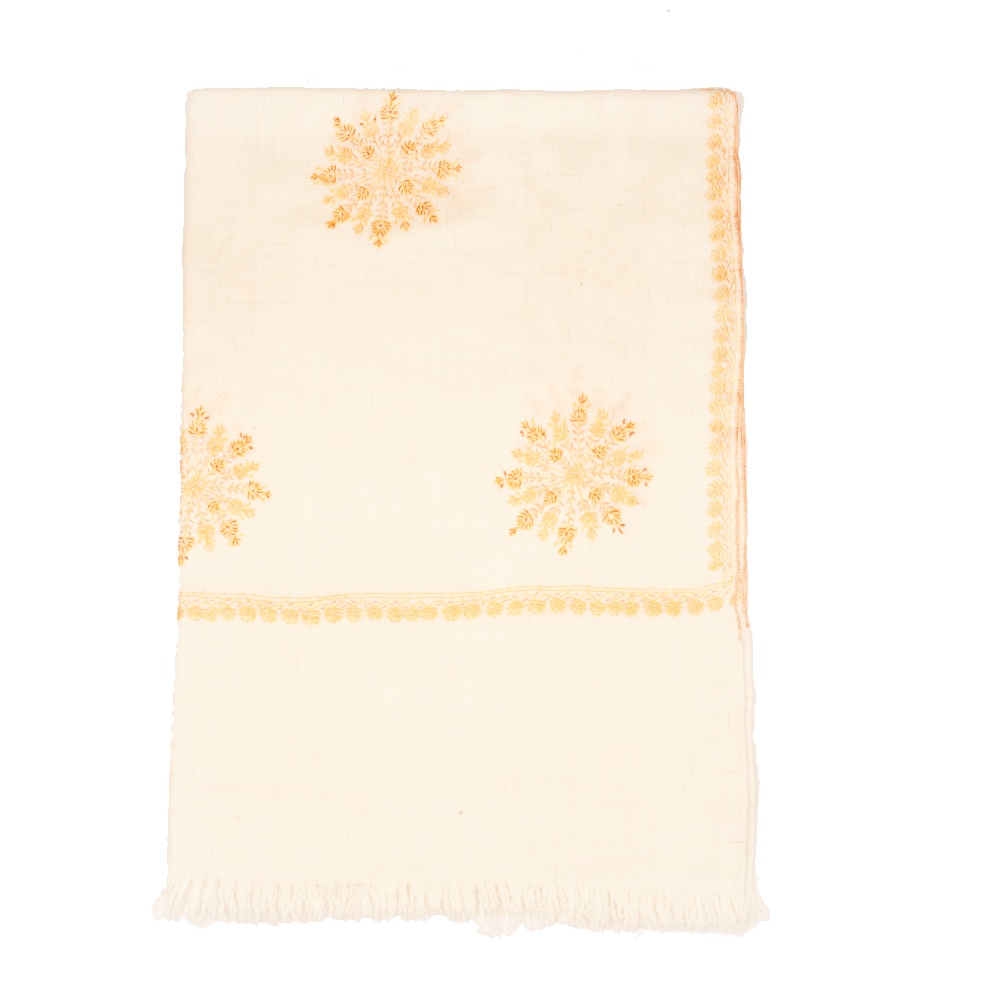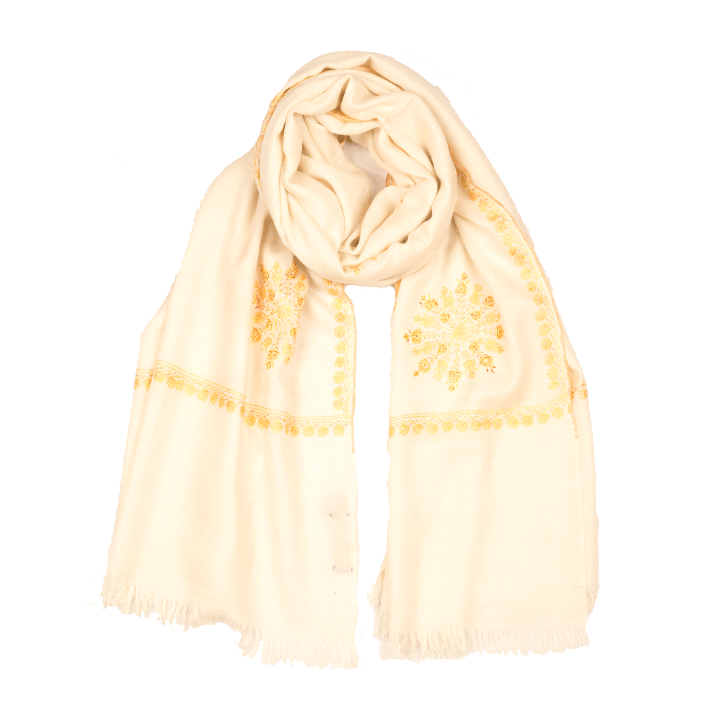 Embroidered Pashmina Stole - White & Salmon