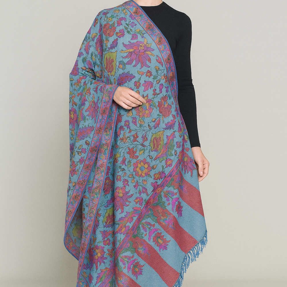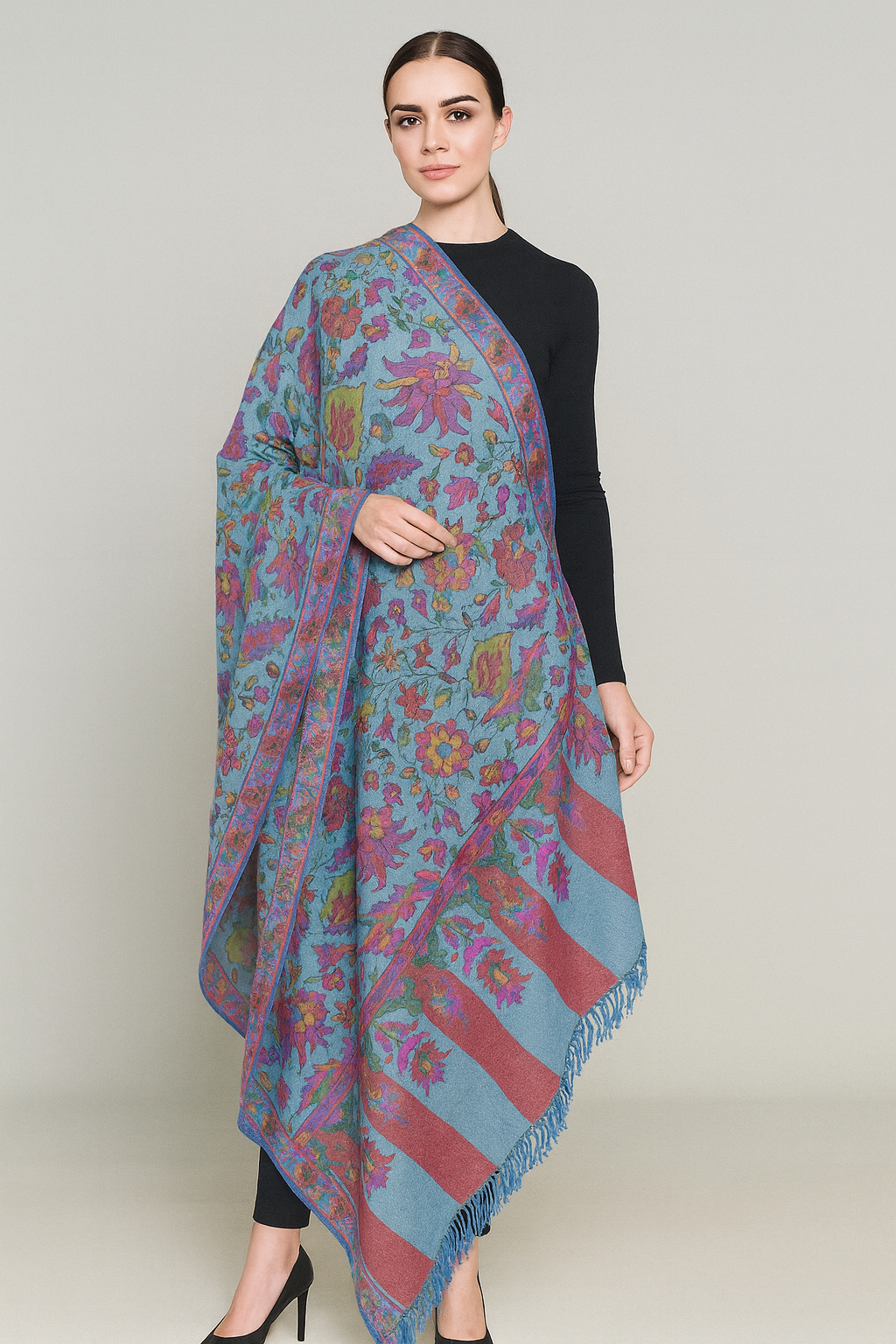 Handwoven Kani Pashmina Shawl - Blue Purple Floral Skip to content