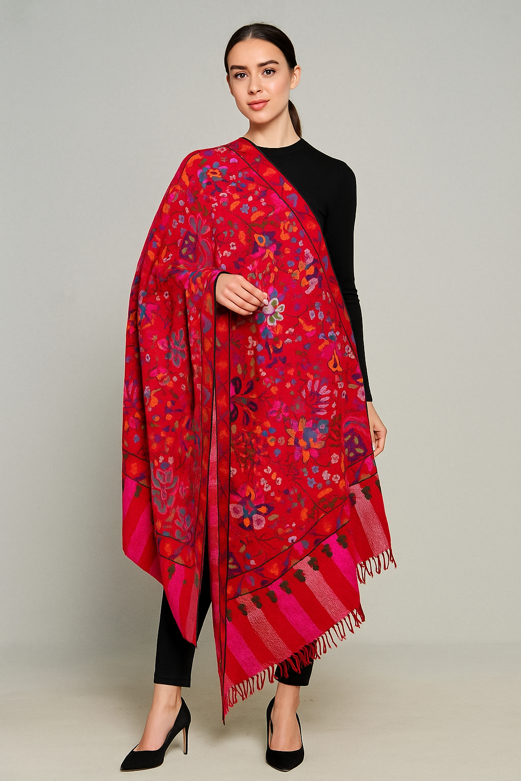Handwoven Kani Reversible Pashmina Shawl – Fuchsia Pink